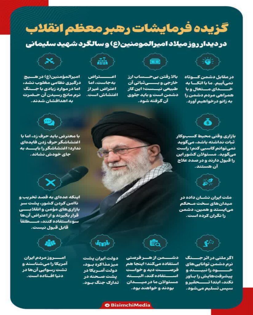 گزیده فرمایشات رهبر معظم انقلاب – دیدار روز میلاد امیر المومنین (ع) و سالگرد شهادت شهید سلیمانی