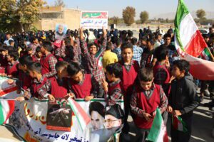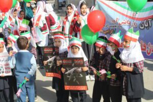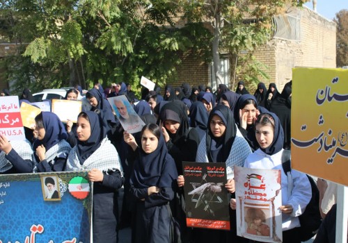 🔸 مراسم با قرائت قرآن کریم و سرود ملی آغاز شد و سپس شرکتکنندگان با در دست داشتن پلاکاردها و شعارهایی علیه استکبار جهانی، در این راهپیمایی شرکت کردند، دانشآموزان با شور و نشاط خاصی حضور داشتند و با سر دادن شعارهای انقلابی، بر عزم راسخ خود در مقابله با استکبار جهانی تأکید کردند.
