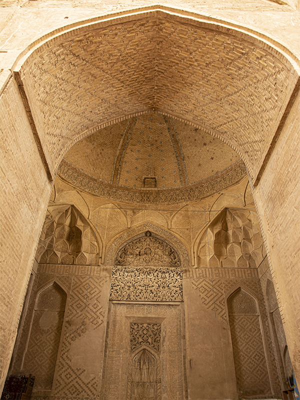 سردر ورودی مسجد با ویژگی خاص دوره ایلخانی یعنی بلند و کشیده و با عرض نسبتا کم بنا شده است. سدر شمالی که بیش از ۱۲ متر ارتفاع دارد و دارای تزیینات آجرکاری، کاشی کاری و کتیبه است. در دو طرق ایوانی که سردررا تشکیل می دهد، بقایای دو مناره دیده می شود که تنها یک سوم آن هنوز پابرجاست. در سال های اخیر متاسفانه قسمت فوقانی مناره های مسجد از بین رفته است ولی قسمت های باقی مانده، با خط نگاره های کوفی بنایی که تکرار جمله «الله اکبر» است و کاشی لاجوردی و فیروزه ای بر زمینه آجری تزیین شده است.