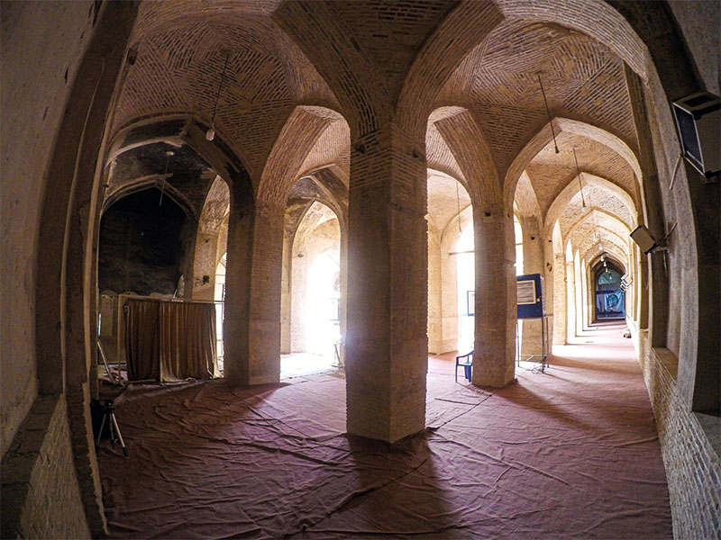 در تعمیرات کاشی کاری سردر اصلی (شمالی) این مسجد، در زیر تزیینات قرن هشتم هجری قمری، کتیبه‌ای به خط کوفی و به سبک کتیبه‌های دوره سلجوقیان به دست آمده است. این کتیبه نشان می‌دهد مسجد در این دوره بنیان گذاشته‌شده است. بنای فعلی در واقع حاصل تجدید بنایی با الحاقات بسیار در قرن هشتم هجری قمری است.